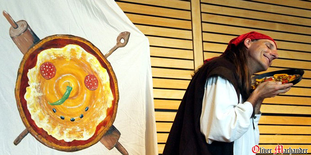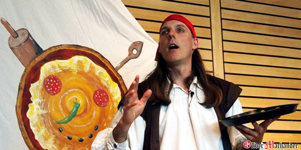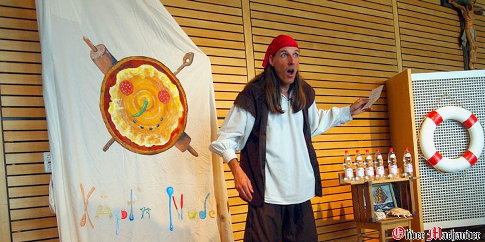 „Ahoi – Alle Mann an Deck! Die Seeabenteuer mit Käpt’n Nudelholz können beginnen!“ – so begrüßt Oliver Machander sein Publikum in der Rolle des sagenumwobenen Käpt’n Nudelholz, und die Reise kann beginnen.